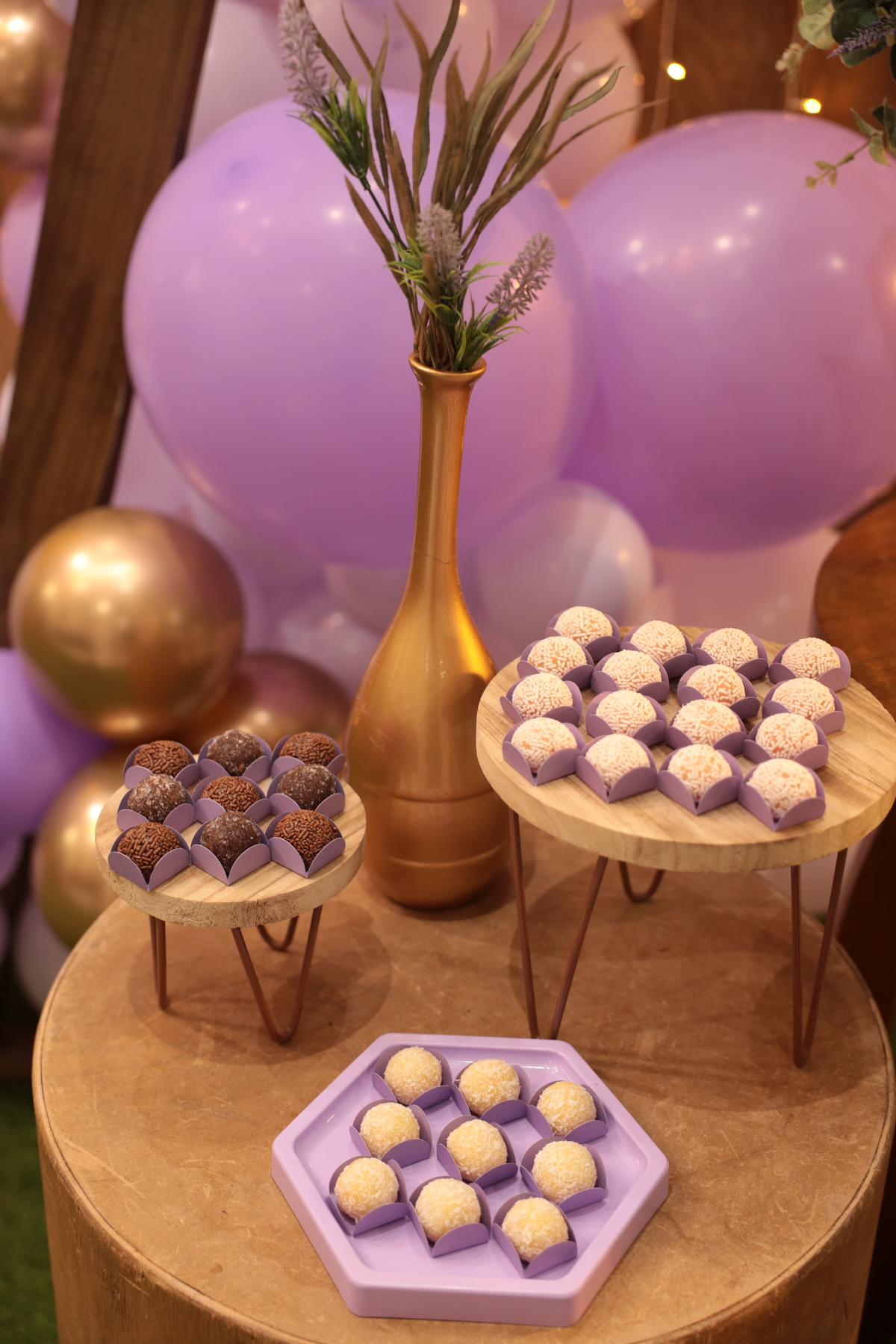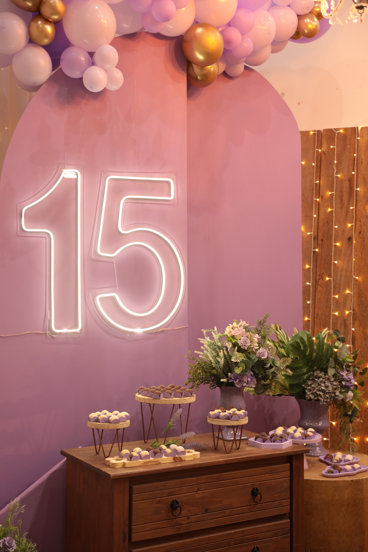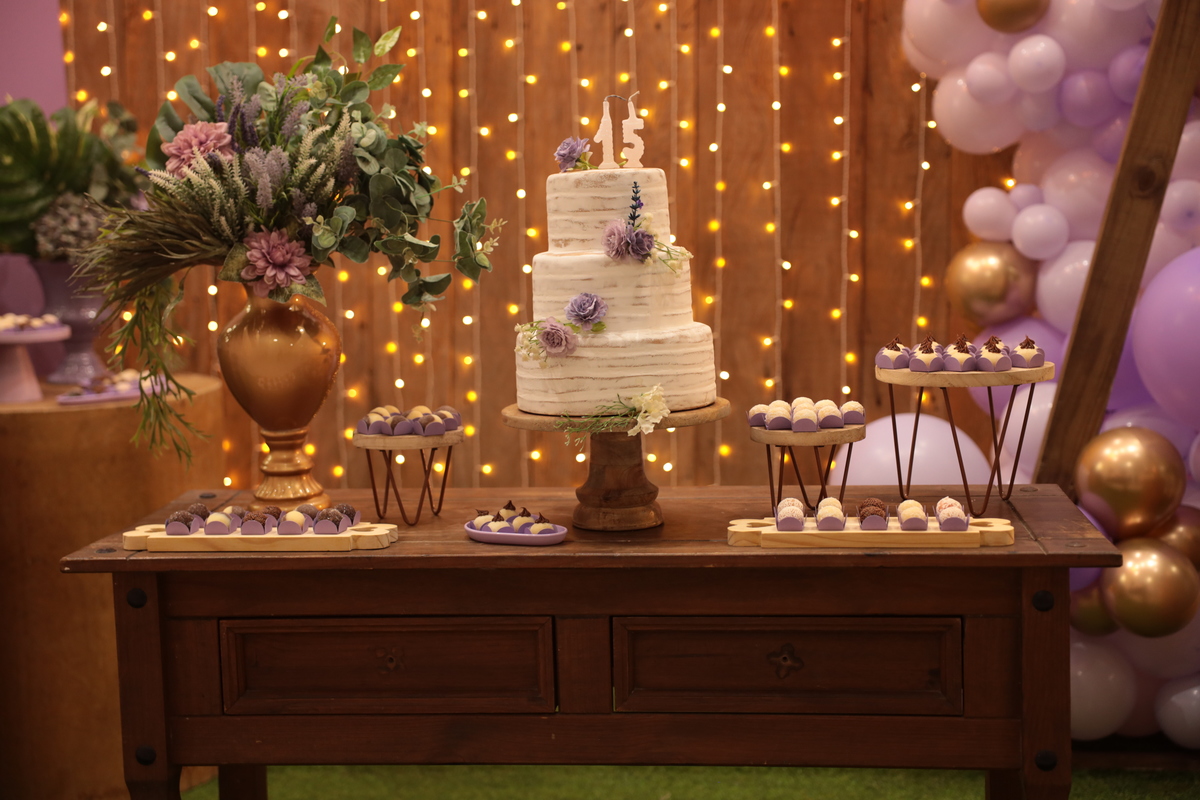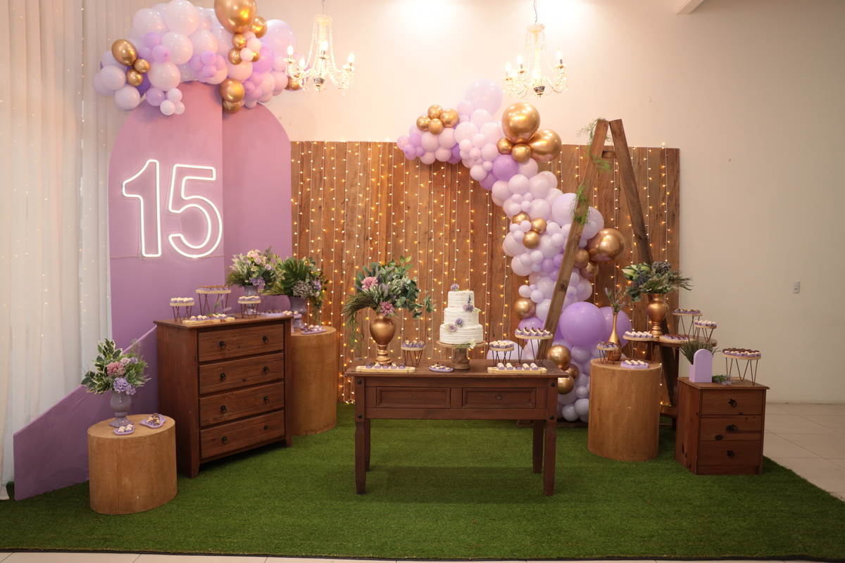 Debutantes & Teens Splendore recepção & eventos - buffet infantil, casa de festas - AV santo Amaro 1672 Camboriu 04/Janeiro/2024 Rustico & lilas - Helo 15 anos Adicional de 03 pacotes de balão cromado ( dourado)